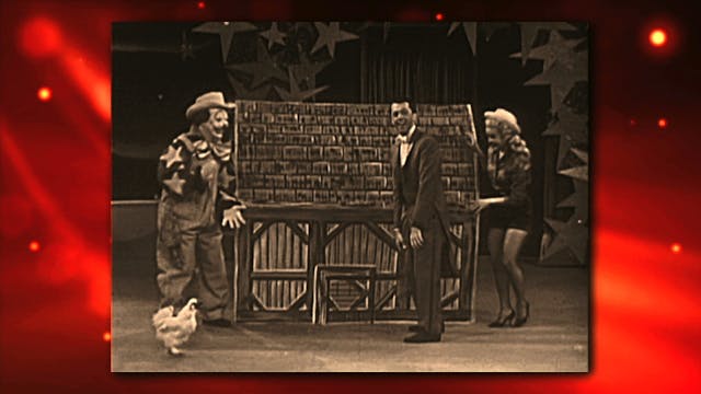 Magic legend Mark Wilson performs a large illusion involving a cow and a barn with the assistance of Nani Darnell and Rebo the Clown.